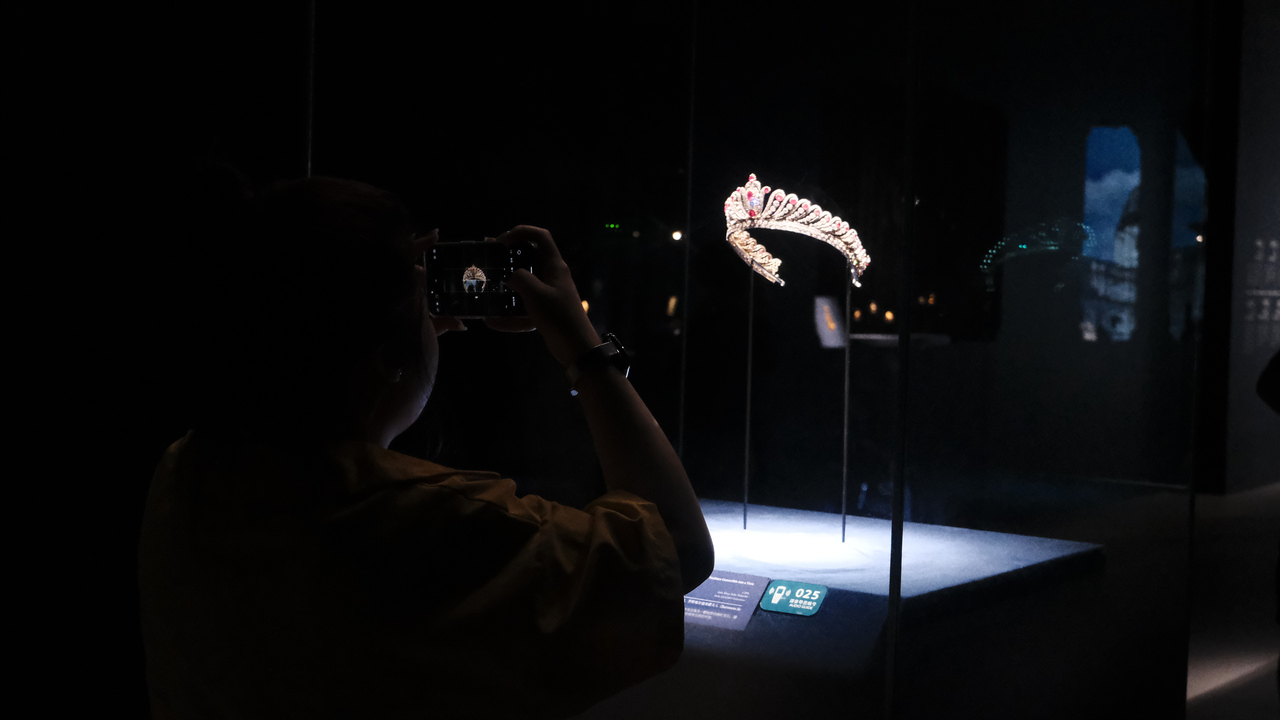 其中“克雷夫科尔麦穗冠冕”尤其引人注目。1810年,拿破仑一世将6支镶嵌钻石的金银麦穗赐予克雷夫科尔家族。百年之后,约瑟夫·尚美受此家族委托重新将其改造成一顶华丽冠冕。此次尚美巴黎珍品的展出,为观众提供了近距离欣赏欧洲顶级珠宝艺术的机会,更通过与中国皇家金器、玉器的对比,凸显了东西方在贵金属工艺、宝石运用上的异同。