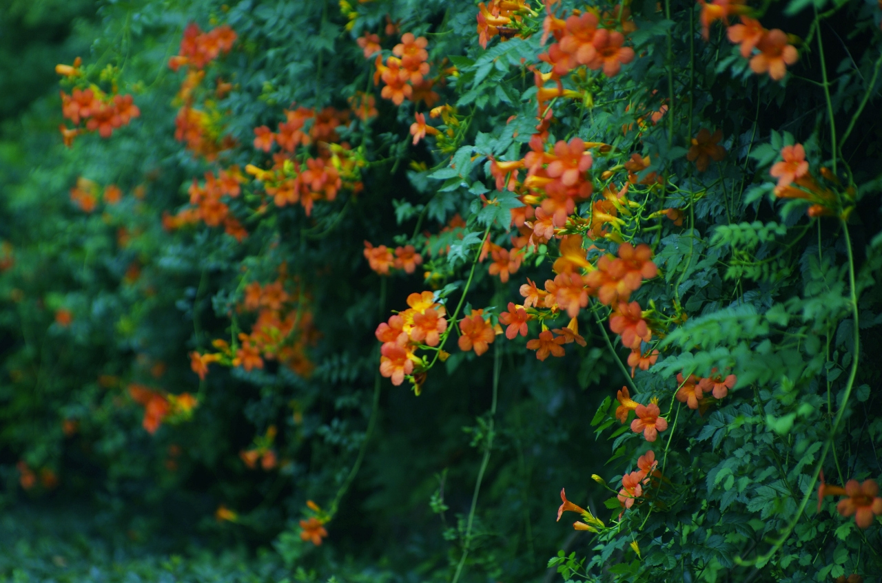 小编:满墙凌霄热热闹闹地开,本身就像把“夏花绚烂”四个字铺成了实景,这些花开陪着你,你又用镜头记下它们,这不就是双向的绚烂嘛!