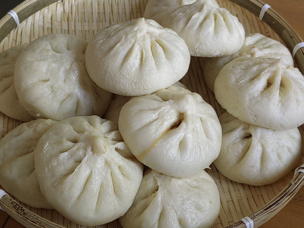 夏天做面食,面粉发酵比冬天容易,揉一揉很快就能发好。不过夏天水分蒸发也快,包子没彻底凉透,表皮就变干了。(原帖点这里)
