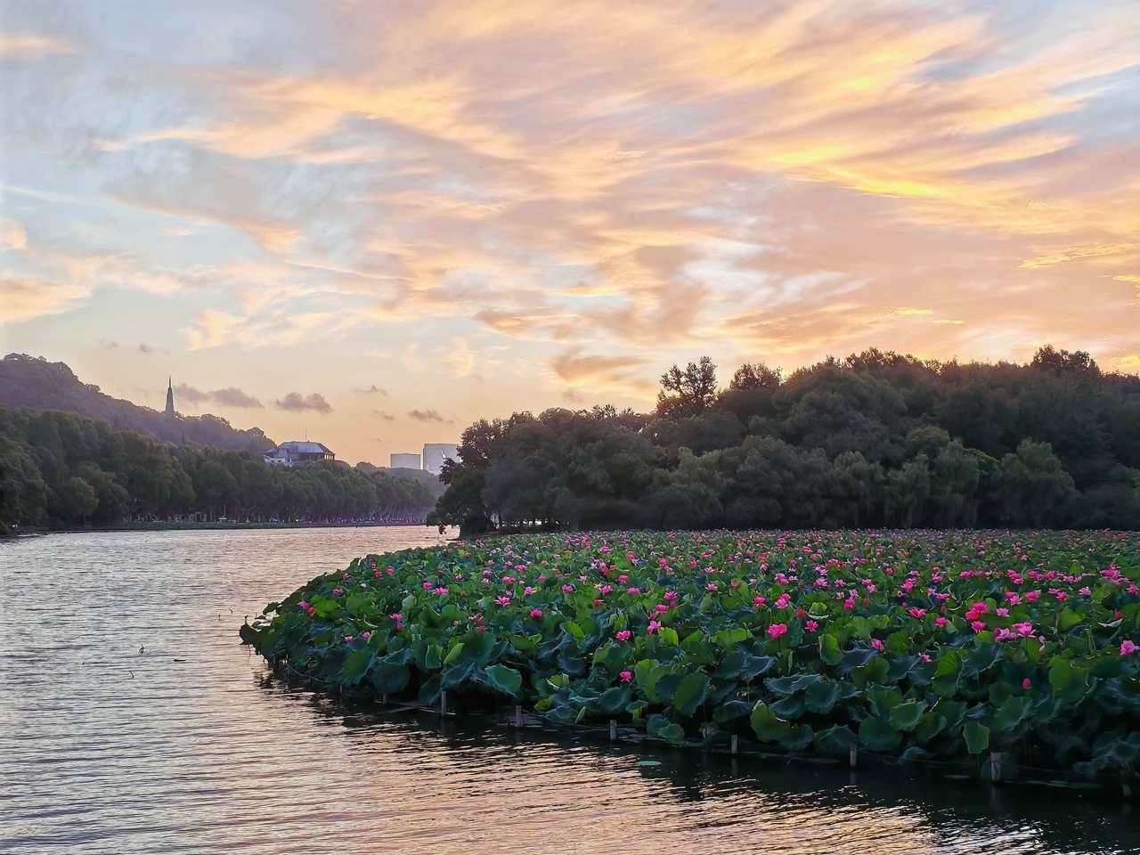 又是一个周末,看天气预报也是晴天,就定了闹钟早起,打算去西湖边看看荷花。