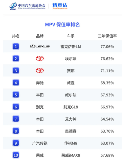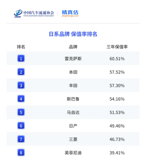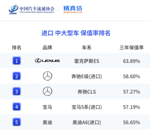 中国汽车流通协会近期发布的《2025上半年中国汽车保值率研究报告》显示,雷克萨斯品牌三年保值率达60.51%,在日系品牌中保持领先。具体车型方面,ES以63.89%的三年保值率位居进口中大型车榜首;NX在进口中型SUV中排名前三(56.18%);LM以77.06%的保值率位居MPV第一。较高的保值率反映了市场对雷克萨斯产品品质和品牌声誉的认可。