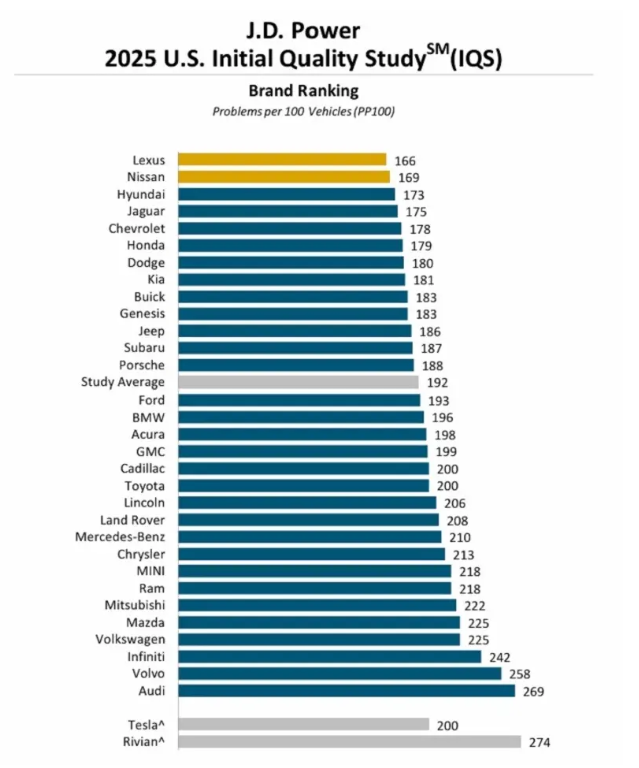 全球权威调研机构J.D. Power公布的2025年美国新车质量调查(IQS)中,雷克萨斯亦取得靠前排名,体现了其在产品可靠性和制造品质上的表现。
