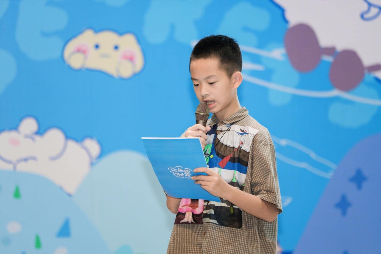 学生代表赵允熠和大家分享了参与本次展览创作的独特体验,化身“天空放映师”——用彩笔在喜欢的云朵照片上画出脑海中的奇妙世界,让它们变得更加生动有趣!接着又当起“天空小诗人”,把小小心事和对未来的畅想写成一首关于云朵的诗。带着满心好奇与期待,踏入了这场充满想象力的艺术探索。也希望大家永远带着这份对世界的好奇,像天空的云朵一样,自由舒展,快乐生长!
