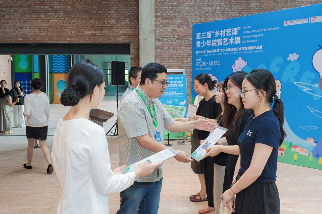 中国美术学院社会美育学院综合办公室主任孙楠在开幕式中分享:本届展览以“云朵的秘密”为主题,“云朵”,这一自然界中变幻莫测、纯洁美好的存在,象征着孩子们丰富多彩的内心世界,也承载着孩子们对美好生活的无限憧憬与向往。而“秘密”一词,则呼应孩子们成长中的心事、梦想,以及那些尚未被外界完全理解的个性与情感。今年是“乡村艺课”项目启动的第九年,“乡村艺课”始终秉持“面向生活、面向自然、面向传统”的课程开发理念,持续将优质的美育资源带入乡村,让乡村孩子同样能够感受艺术的滋养,启迪智慧、润泽心灵。