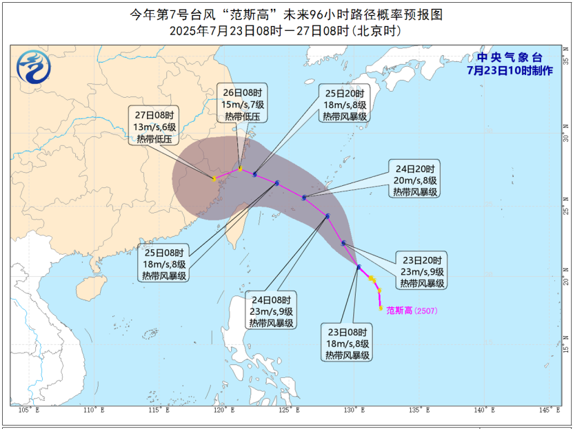 昨天(7月23日)上午,今年第7号台风“范斯高”前脚刚生成,到了下午,菲律宾北偏西方向的热带低压又发展起来了,晚上就加强为今年第8号台风“竹节草”。