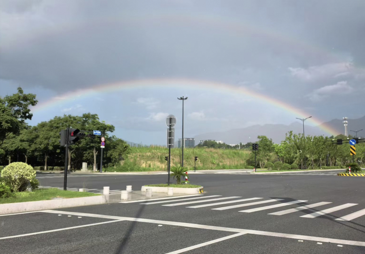 或许人生就该像这场雨后的虹,经历过风雨的洗礼,才会有绚烂的绽放。而那些看似平凡的瞬间,那些被雨水打湿的街角,那些因彩虹而驻足的人们,其实都是生活精心绘制的色彩,交织在一起,便成了生命中最动人的风景。就像此刻,虹已散去,可那份初见时的惊艳,却在心底慢慢沉淀,酿成了往后岁月里,想起时便会微笑的甜。