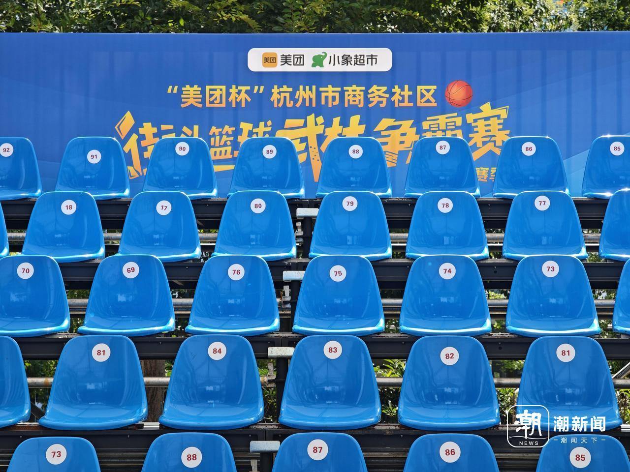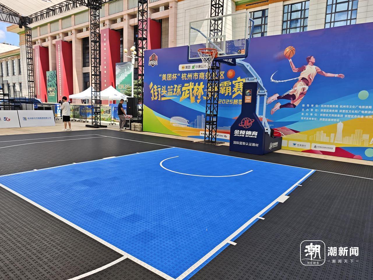 “我们是按照国际篮联(FIBA)标准搭建的场地。”据现场工作人员介绍,这两片场地是杭州市商务社区街头篮球武林争霸赛(简称“楼BA”)正赛用地。