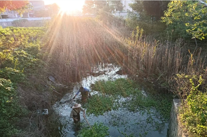通过全面清理打捞漂浮在河道的垃圾、杂草及枯树枝等废弃漂浮物,清理河岸上的垃圾,对堵塞的河道进行疏通,确保河岸水面干净整洁。