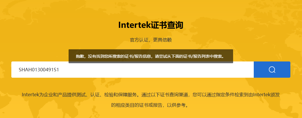 然而,记者试图在上述第三方检测公司官网输入报告号查询时,结果显示没有找到您所搜索的证书/报告信息。