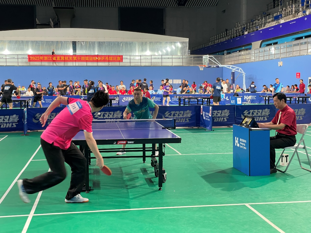 7月25日至26日,2025年浙江省直属机关第十四届运动会乒乓球比赛在杭州黄龙体育中心举行。本届赛事共有67家单位的600余名运动员参赛,其中51支队伍参与了竞争激烈的混合团体项目角逐,报名规模创历届之最。本次比赛由中共浙江省委直属机关工作委员会主办,省直属机关第十四届运动会组委会、省直属机关文体协会、省直属机关工会委员会共同承办。