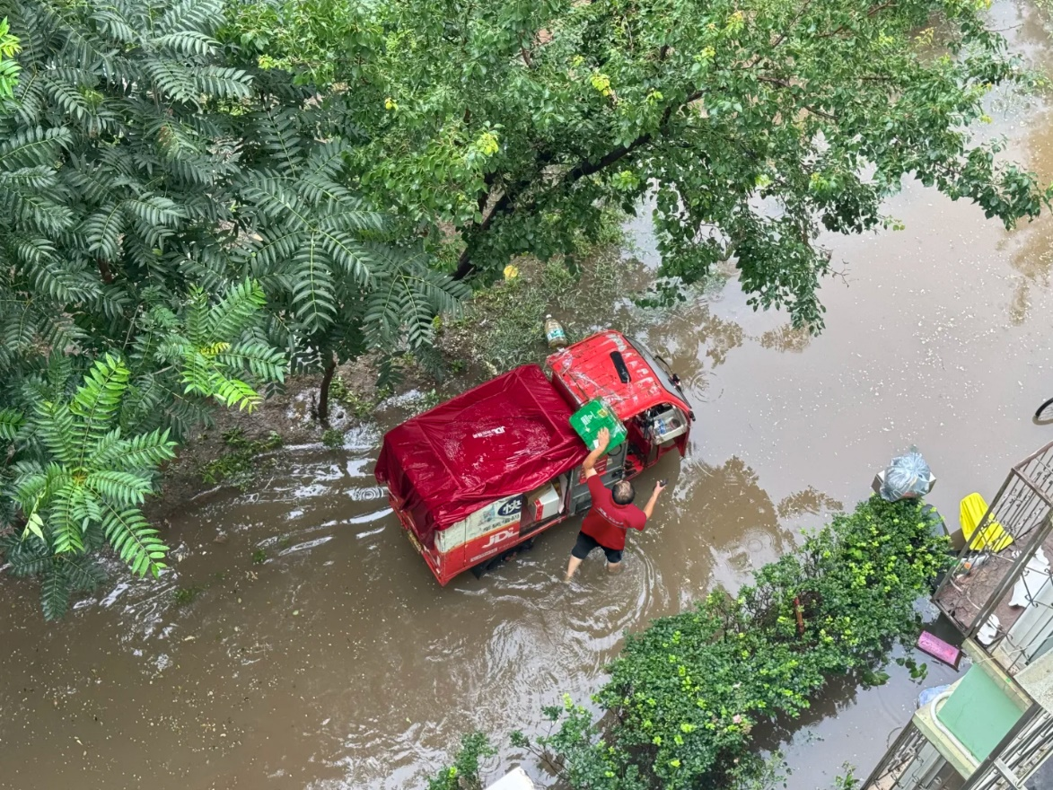 河北阜平京东小哥参与防汛救灾