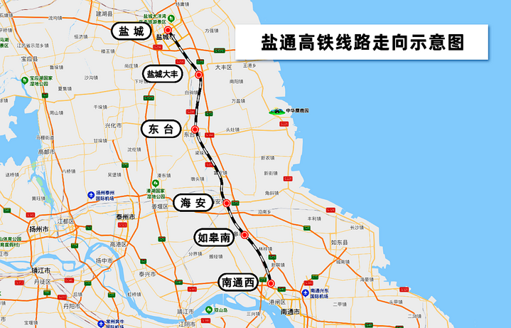 盐通高铁是我国“八纵八横”高铁网的重要组成部分,也是助力“一带一路”建设和“长江经济带”发展的重要交通脉络。盐通高铁正线全长156.6公里,设计时速为350公里,全线共设盐城、大丰、东台、海安、如皋南、南通西等车站,预计年底开通运营。
