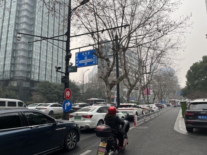 在经过延安路的1.5公里的路程中,记者都有些恍惚,曾想走些小巷,没想到,不少汽车被“嵌”在巷子里,想必一时半会也走不出去,“好久,没有这样的经历了。”