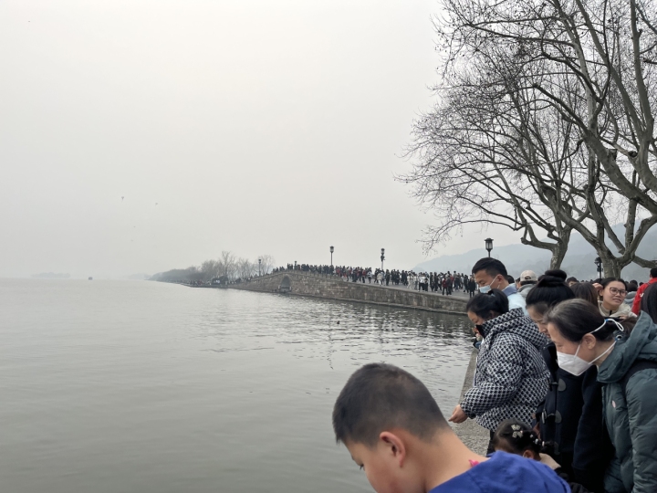 摩肩接踵的西湖边,游船班次都翻了三倍