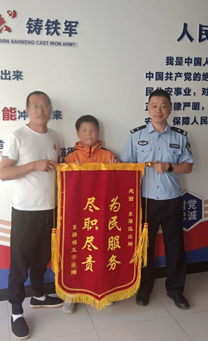 5月1日下午,13岁男孩王晨(化名)开心地跑进浙江临海东塍派出所值班室,将一面制作精良的锦旗塞到了民警手里,这是他花了130元压岁钱定制的锦旗,只为感谢民警用心帮他寻回丢失的100元。