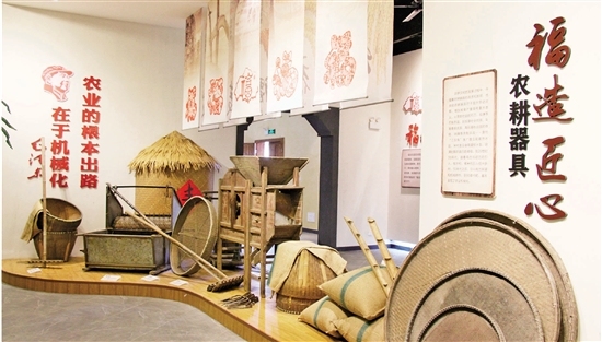位于福全街道徐山村的农耕博物馆极具特色。上世纪五十年代,这里曾是福全公社(当时称五星公社)的公粮集中储藏地,由5间房式仓和6个土圆仓组成。2020年,福全街道借助“五星3A”创建,把这个闲置的粮仓改造成了农耕博物馆,再现了福全农耕文化的历史脉络、农耕用具、当时劳动场景,给人以深刻的印象。