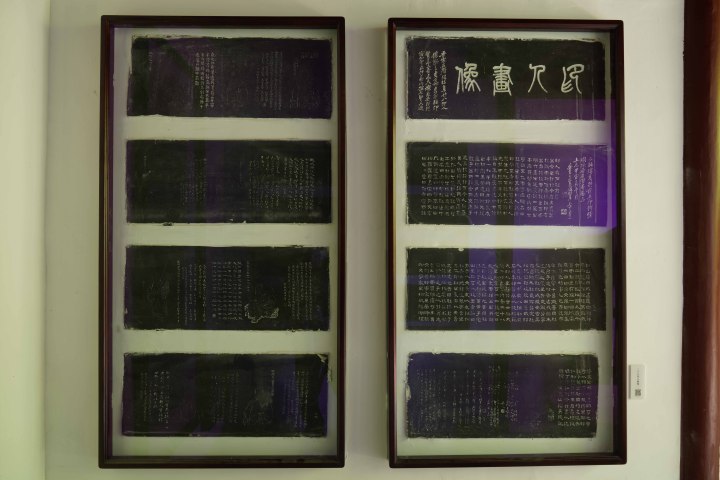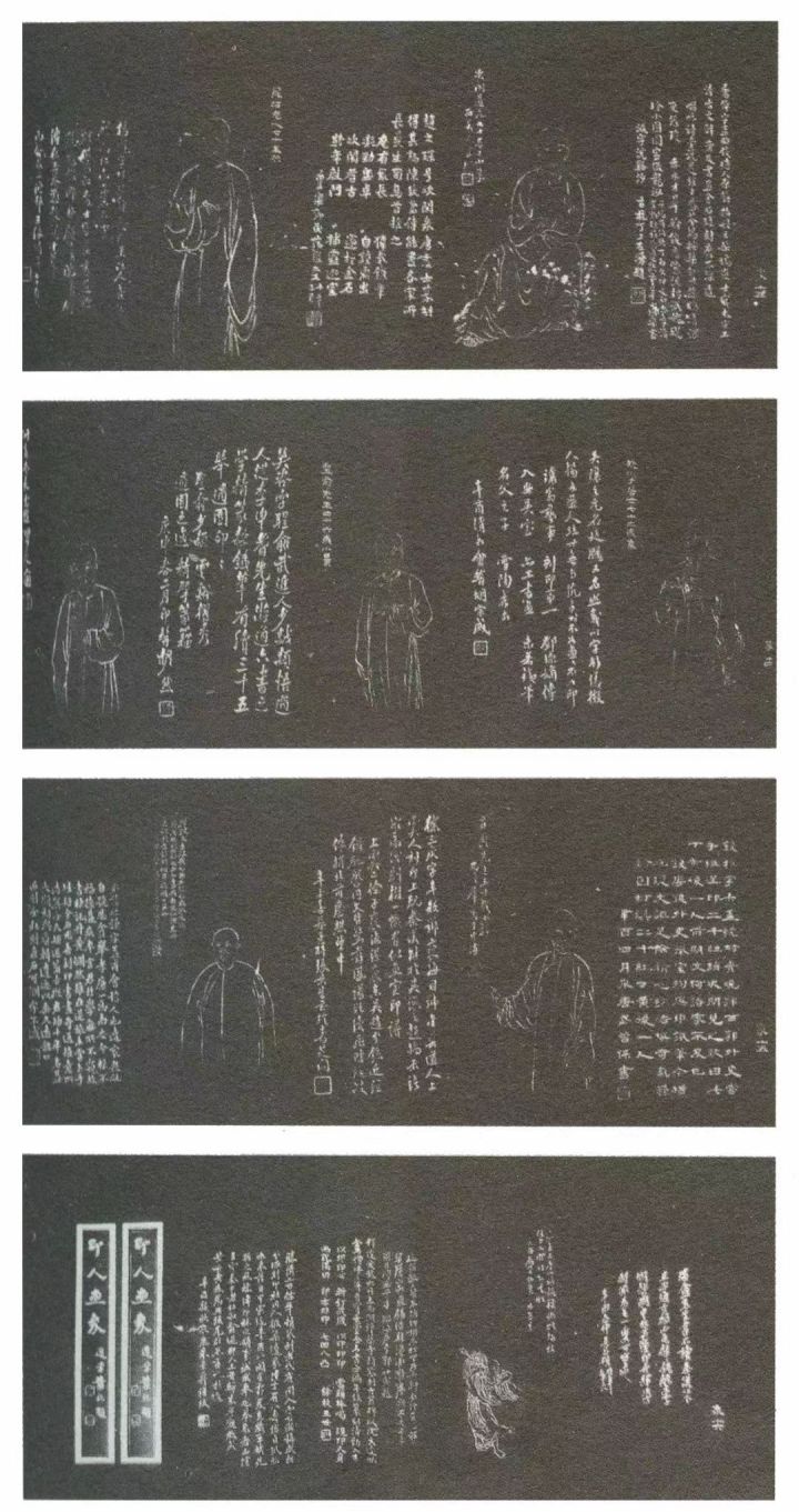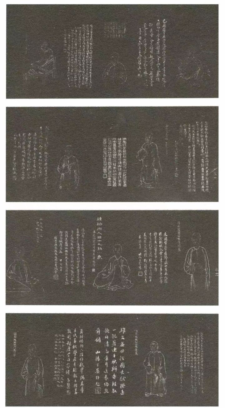 在仰贤亭的左右两壁,嵌着二十八个印人的画像,它们刻于1914年,共有十六石。