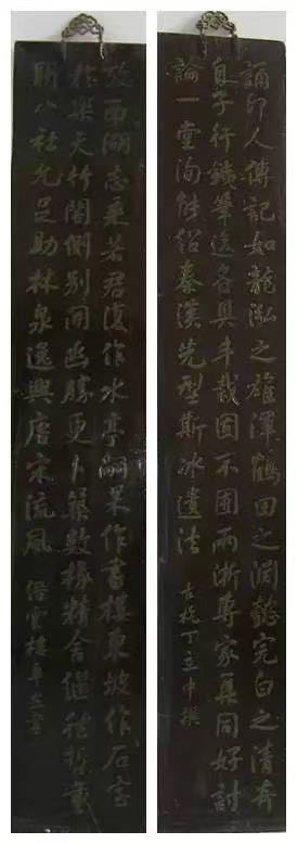 这幅长联上联的意思是说:作者诵读印人传记,知晓丁敬作品的雄浑仓古,清初著名篆刻家林杲作品的意境深远,清代皖派篆刻家邓石如作品的清奇俊逸,自元代吾丘衍以来,各具特色,本就不固守局限于两浙之风。现在可以更好地在此一起讨论印学,继承秦篆汉隶之韵,李斯、李阳冰书法之体。长联下联是说:通过考据西湖地志,得知这片宝地,曾有北宋杭州诗人林逋傍水建亭,元初诗人董嗣杲筑过书楼,宋代僧人筑石室纪念苏东坡,唐代白居易筑竹阁以纳凉歇息。如今这方幽静之地,新添几处阁榭,与仰贤亭联为一体,像明代的西湖八社诗人那样的组织一样,于疏林山泉间,读书习艺,进行学术交流与切磋,在这里继承唐宋以来浓郁的文坛风气,诗酒天地,更添雅兴。