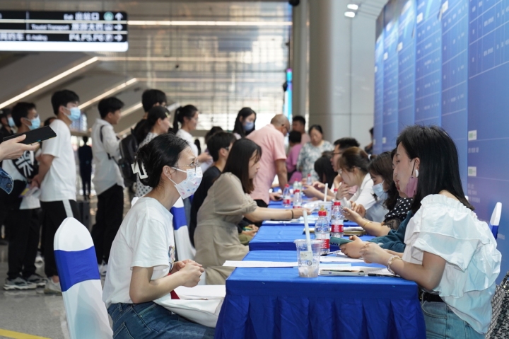 5月26日,“潮聚杭州 走进余杭”青年人才就业实习综合双选会在杭州西站举行。64家企业带来了1500余个岗位需求,涉及计算机、互联网、教育培训、电子商务、科技文化等行业。