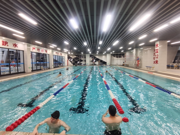 走进游泳馆,水清见底的每条泳道上都有不少游泳爱好者畅游其间。