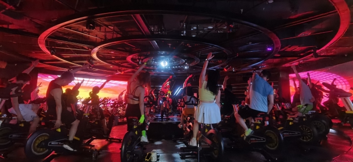 20时,动感单车的劲爆音乐还没有停止。只见40余人齐聚一堂,在教练的引领下,一边带劲地踩着单车,一边飙汗。作为一项有氧运动,它受到很多年轻人的青睐,健身者们纷纷表示,只要尝试过它,就会被其魅力所迷住。