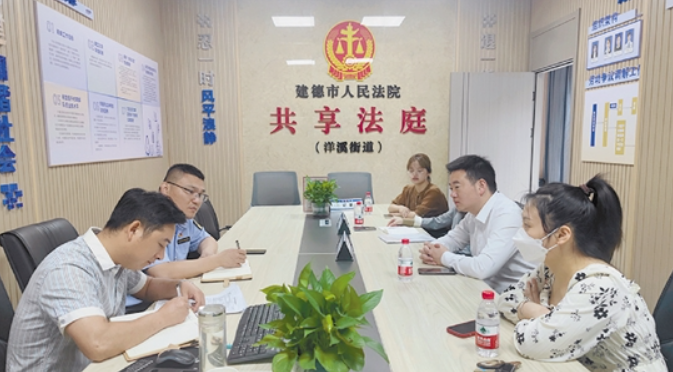以中心共享法庭为例,共享法庭实现三级联网,对上连接建德市法院,对下连接村社共享法庭,通过视联网,实现线上指导参与协调。3月,洋溪街道共享法庭就通过“四方连线”的模式,将法院、矛调中心、双方当事人四方加入创建的线上调解平台,完成原、被告身在广西、海南两地的纠纷化解。