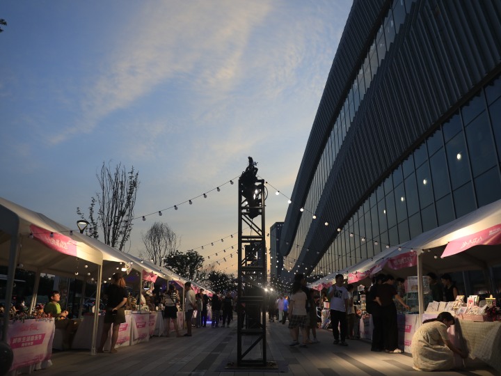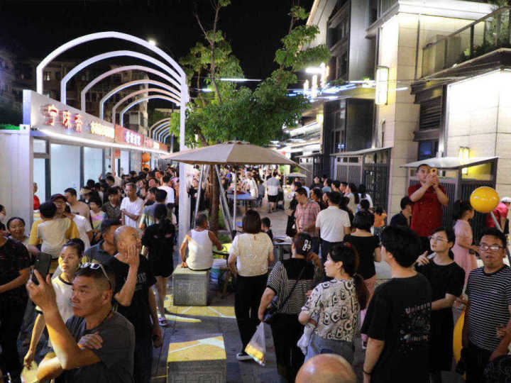 当晚,荷花塘内霓虹闪烁,在游客欢呼声中,200架无人机闪耀天空,不时变换阵形,实力“宠粉”。沿着荷花塘边,古风爱好者扮演“卖花郎”,用扁担挑着荷花悠闲漫步,吸引游客打卡。更有村民激情表演舞龙队和击打非洲鼓,烘托节庆氛围。“听了歌,吃了美食,我很喜欢。”来自湖南的游客张凤在村里一阵转悠,拍了不少打卡视频,“本来是只去国清寺,却偶遇这里的民宿和音乐节,住得很舒服,决定再多住一晚。”