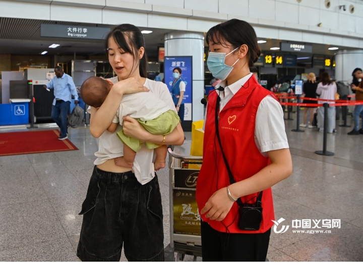 7月12日中午,室外气温超38℃,义乌发布今年首个高温红色预警。“坚持一下宝宝,妈妈马上叫车……”义乌机场国内到达处,一位母亲抱着两三岁的孩子,背包、挎包、拉杆箱在她的肩上、手上显得格外沉重。见此状况,恰好巡逻至此的义乌市公安局机场分局(以下简称“机场分局”)民警赵红兵立马迎上前去,将母子俩带到刚刚投用的公安智慧岗亭内休息。