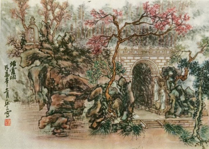 画幅左上角,题识“六和塔俯瞰钱塘江大桥。一九五九年四月廿日游踪,归越半月记,吴湖帆”,右下角钤“湖山如画”朱文印,显示出画家对这幅作品的珍爱和重视。彼时,吴湖帆正处于笔墨的砥砺阶段,他将创作视野从传统的文人画转向新时期、新形势下的新题材,在师古人、师造化的基础上,一改传统中国画追求淡泊清远、隽秀典雅的趣味,勇于探索,孜孜变法,以质朴热情的笔触,在写实中畅抒心境,赋予作品浓郁的时代气息,富于特殊的历史意义和现实意义,彰显出一位优秀画家与时俱进、融入生活、不断创新的创作精神。《钱塘江大桥》曾收录于《吴湖帆:海派百年代表画家系列作品集》(上海书画出版社,2013年)《中国近现代国画名家精品集:吴湖帆·山水》(上海书画出版社,2014年)。 (作者系上海市崇明区博物馆副研究馆员)