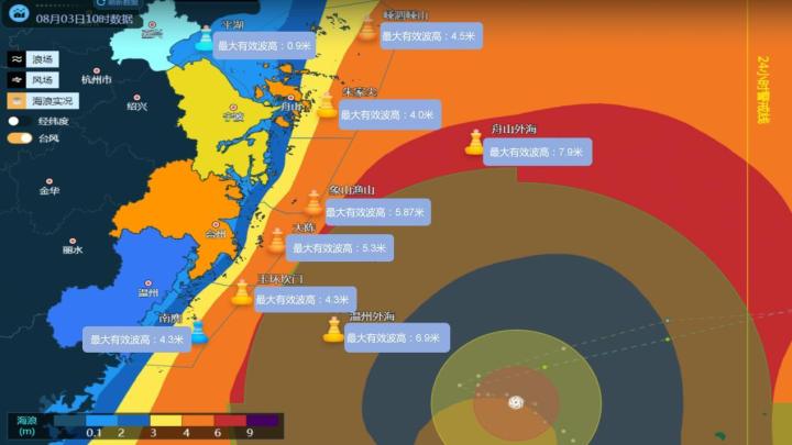 浙江省海洋监测预报中心8月3日16时发布风暴潮红色警报:受第6号台风“卡努”(强台风级)影响,预计今天夜间到明天白天:嘉兴、舟山、宁波沿岸将出现60~120厘米的风暴增水,台州沿岸将出现80~130厘米的风暴增水,温州沿岸将出现60~110厘米的风暴增水。宁波市风暴潮预警级别为橙色;嘉兴、舟山、台州、温州市风暴潮预警级别为红色。