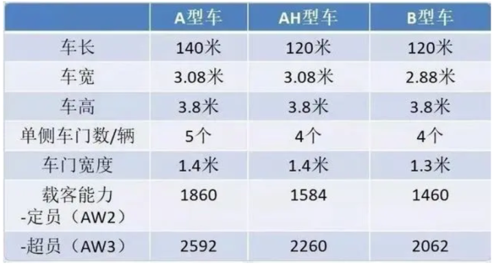 3号线、5号线、6号线则为Ah车型,车长度和B型车一样,宽度和A型车一样,载客量在两个车型中间,每列定员1584人。