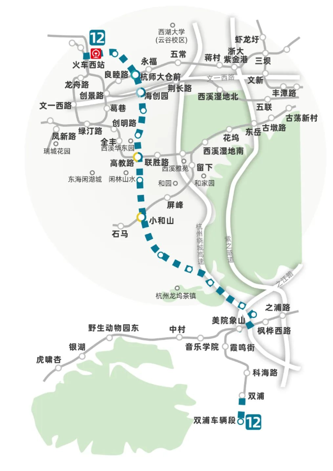 12号线一期由已运营的6号线双浦支线拆分后,分别向南、向北延伸而成,新建工程线路长约26.05公里,设站15座,设计时速100公里。