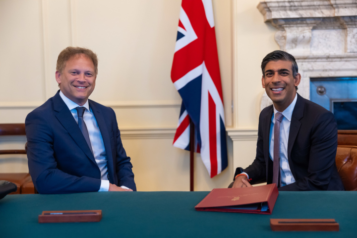 8月31日在英国伦敦首相府拍摄的英国首相苏纳克(右)和格兰特·沙普斯。新华社发(英国首相府供图)