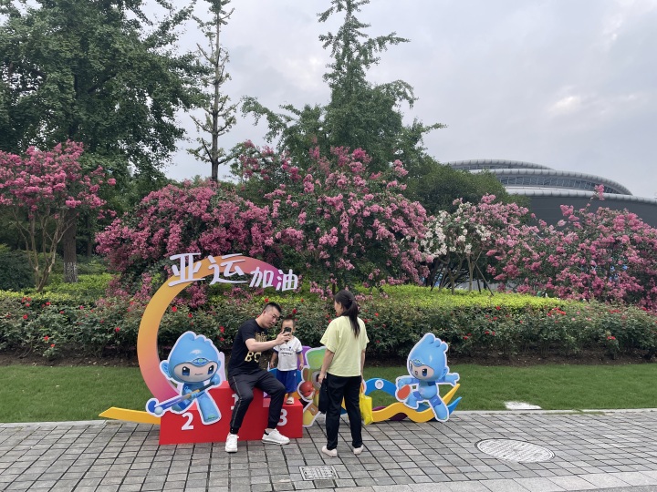 为了更好营造亚运氛围,花展还设置了5个打卡点,将“花韵与亚运”深度融合,市民朋友们可以在欣赏美景的同时为亚运助力。