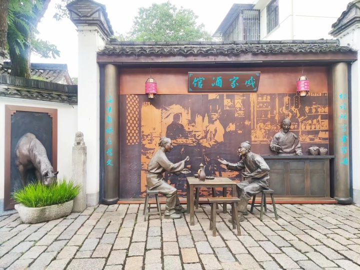 假如我们穿越回当年的酒坊巷,可以见到戚师傅正忙着指挥的制酒工人忙忙碌碌:制曲的、挑水的、蒸米的、拌曲的、装缸的、封坛的……整条巷子蒸气缭绕,美酒飘香。巷中有售酒的店面,逢办喜事、年关将至、节日、农忙,需备酒的,车来车往,肩扛担挑,好一派购销热闹又喜气的场面。巷中出产的酒,源源不断地经码头上婺江远销外地,赢得天下第一美酒的称号,也曾被写入《金瓶梅》一书,是过年的指定用酒。酒肆中划拳的人喊声震天,个个脸上泛着红光,老板娘笑容满面招待八方来客。此外沈约、李清照、黄人望、汤恩伯……都朝这里走来。