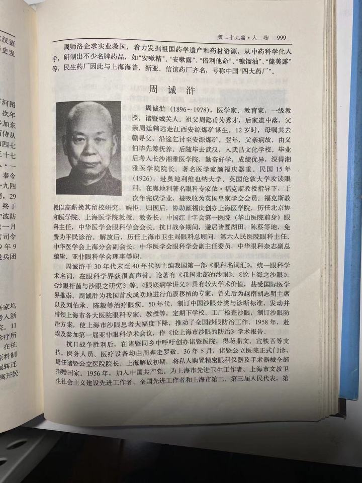 在陈市长的办公室,周诚浒赠送了陈市长《眼科名词汇编》和《上海之沙眼》《沙眼杆菌与沙眼之研究》《眼底病学讲义》等,自我介绍姓名、籍贯、留学、办学等情况,并告诉陈市长准备在国外进口的精密贵重仪器要捐给人民政府。