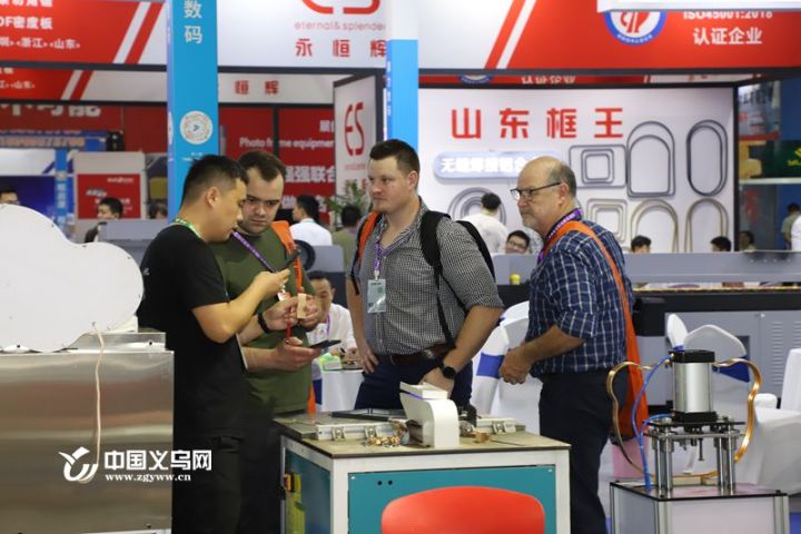 在佛山市桌顶铝业的展台,来自俄罗斯的客商lgor正在与销售经理杨舟商谈采购事宜。“画框在国外应用广泛,房屋装修、博物馆、学校都有它们的身影,这次主要看新产品。”lgor告诉记者,义乌市场的小商品才是他采购的目标,框画只是其中一个小类目,目前除了在展会试单外,已经在义采购了几个柜的产品,后续还会前往广东考察工厂。