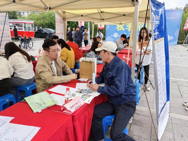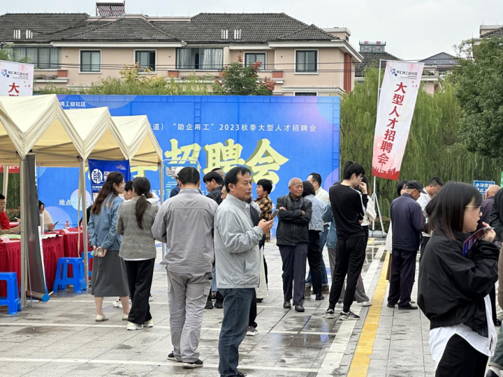 秋雨送清凉。10月13日下午,海盐经济开发区(西塘桥街道)党群服务中心(文体中心)广场上人头攒动,该区(街道)“助企用工”2023秋季人才招聘会正在这里火热举行。
