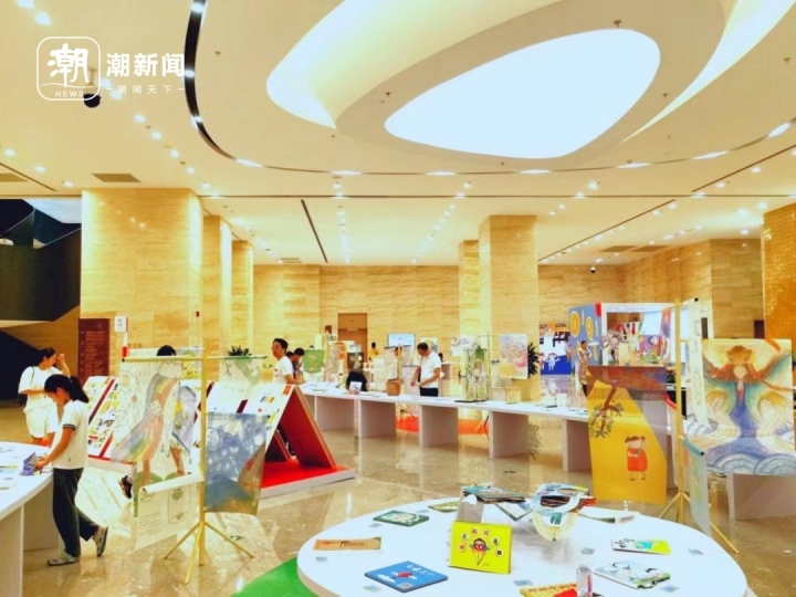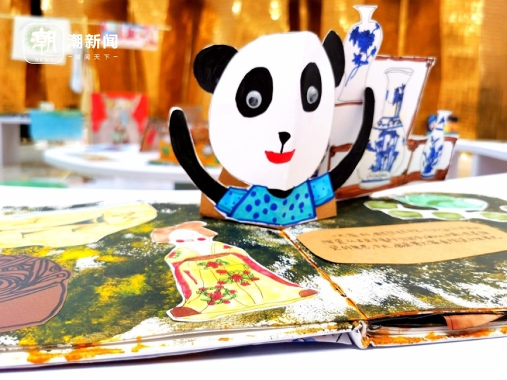 展览以“绘本里的中国”为主题,以 “妙笔童心 绘梦世界”儿童原创绘本设计大赛的优秀作品为内容,汇聚了来自浙江、福建、甘肃、江苏、山东等全国各地及海外小朋友们的优秀绘本作品。这些作品以儿童独特的视角和生动的笔触,展现了孩子们对中国文化的自然风光、历史文化、民间故事等元素的认知理解和独特表达。在这些作品中,既有剪纸、拼贴、版画、捏塑、声光等多媒介表现形式,也有水墨画、版画、水粉画等绘画技法;作品内容上既有创意新奇的神话名著改编,色香味俱全的美食文化推荐、也有励志陶冶情操的英雄人物、成长故事等。另外,展览的现场还有专门为盲童制作的绘本触摸书作品以及盲人写字体验装置,这些绘本触摸书不仅为盲童打开了通往知识的大门,享受阅读的公平和阅读的乐趣,也让我们身边的儿童感受到盲童阅读的不易,让生活在同一片天空下的儿童们去感受阅读的快乐。