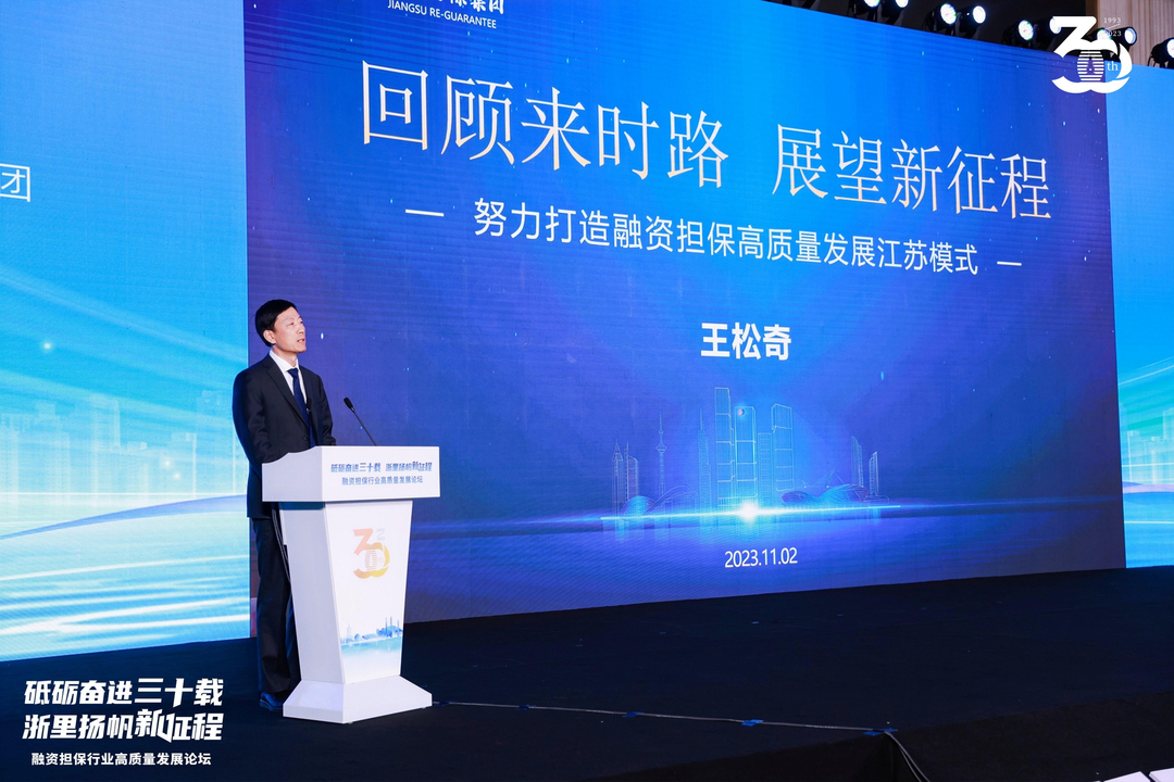 江苏省信用再担保集团党委副书记、总裁王松奇以《回顾来时路 展望新征程 努力打造融资担保高质量发展江苏模式》为题作主旨发言。他表示,江苏信保集团坚持“政策性引领、市场化运作、集团化协同、综合化服务”,以“用信用心,让融资变简单”为使命,以“信用行业先行者,企业成长好伙伴”为愿景,在服务全省高质量发展中发挥了重要的金融支撑作用。站在新的起点上,江苏信保集团将不断坚定信心、振奋精神,推动新时代担保行业取得更加丰硕成果。