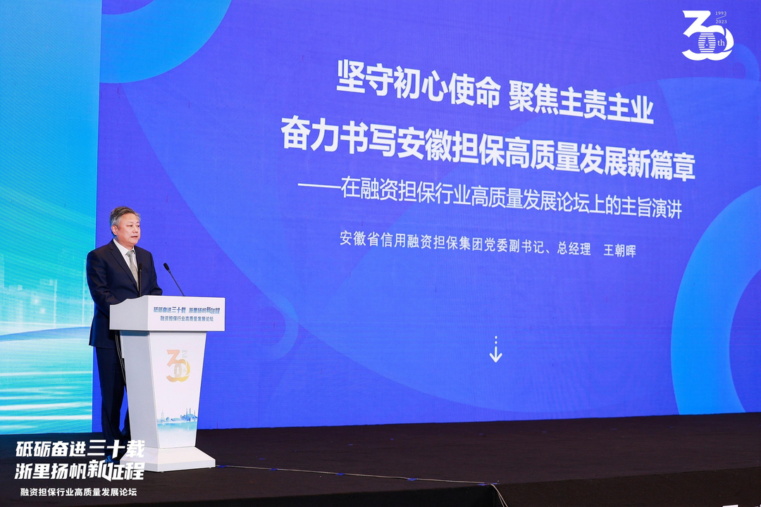 安徽省信用融资担保集团党委副书记、总经理王朝晖以《坚守初心使命 聚焦主责主业 奋力书写安徽担保高质量发展新篇章》为题作主旨发言。他表示,安徽担保集团始终坚持政策性定位、践行普惠金融、服务实体经济、促进地方发展的经营宗旨,聚焦支小支微支农支科的主责主业,构建全省担保体系,为撬动“金融活水”源源不断流向小微企业和实体经济作出了重要贡献。下一步,安徽担保集团将继续探索推动行业变革发展的路径和方法,书写担保行业高质量发展新篇章。