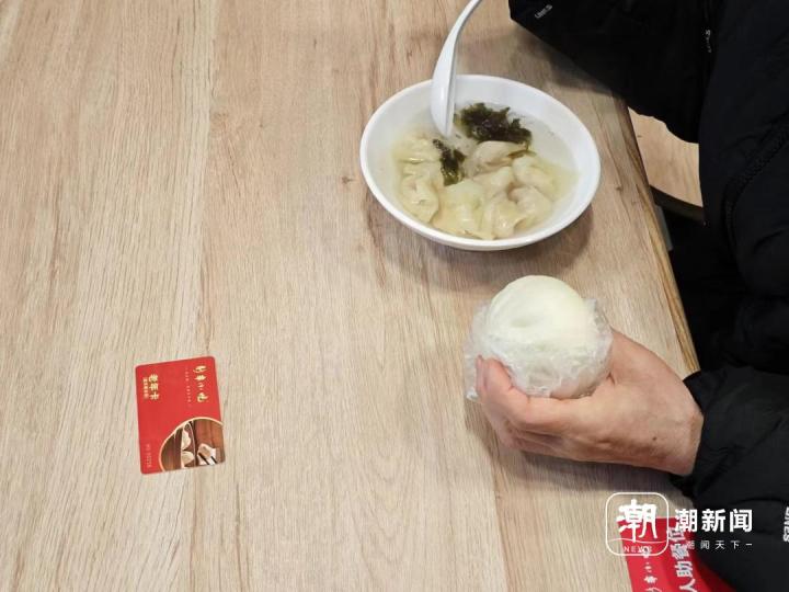 一大早,家住西湖区古荡街道华星社区的杨大姐,就兴致匆匆地来到了家门口的新丰小吃店,点了一个肉包、一碗虾肉馄饨,一共10元。