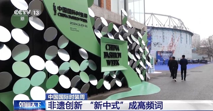 总台央视记者 吴天白:现在我们就来到了南新仓文化休闲街,在这里,国际时装周举办了一场中式美学新主张艺术展,里面展出的都是“新中式”风格的时装。