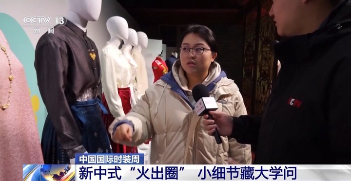 总台央视记者 吴天白:在时装周的活动上我拿到了本届时装周的日程安排表,近百场的活动中,这种涉及“新中式”内容的活动就超过了一半,新中式成了本届时装周上的高频词。