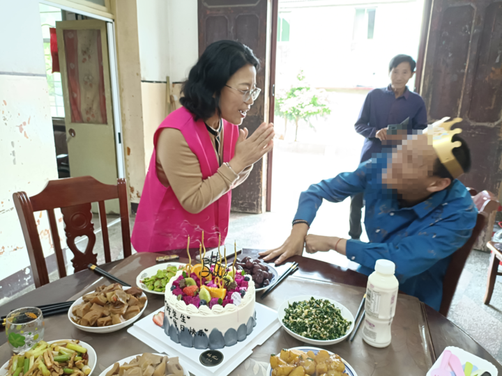 4月25日,下管镇社会工作站、下管镇助联体服务站的社工来到了小强的家里,为他送上了一个漂亮的生日蛋糕和礼物,陪伴他过上了一个热热闹闹的生日。“我今天太开心了,不仅有家人在,还有你们几个姐姐陪我,还有蛋糕吃,太谢谢你们了。”小强开心地说道。