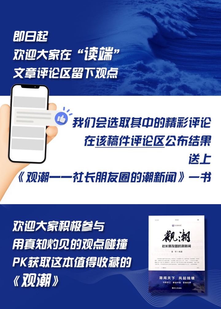 【编者按】潮新闻《读端》栏目,邀请专家学者、党政干部、企业家等各行各业人士点评新闻报道,虽寥寥数百字,但这些独到的短评,可以更好地帮助我们理解或换个角度看新闻。我们将这些散落的珍珠收集起来,串联成链,供更多人品读。也欢迎大家参与“读端”讨论。