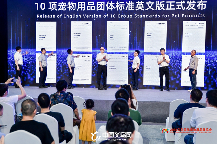 5月24日,《背提宠物用包》《宠物窝》《宠物香水》等10项宠物用品团体标准英文版在义乌正式发布。