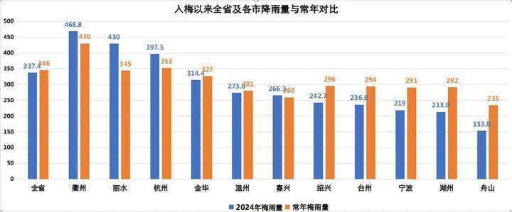 入梅以来全省及各市降雨量与常年对比 图源:浙江水利