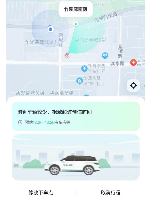 有了专业人士指导,记者再次打开了“萝卜快跑”APP修改目的地,没过多久,果真打到了一辆位于4公里外的“萝卜快跑”。