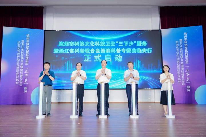 现场,杭州市科协文化科技卫生“三下乡”服务暨浙江省科普联合会健康科普专委会抗老化专项行动正式启动。